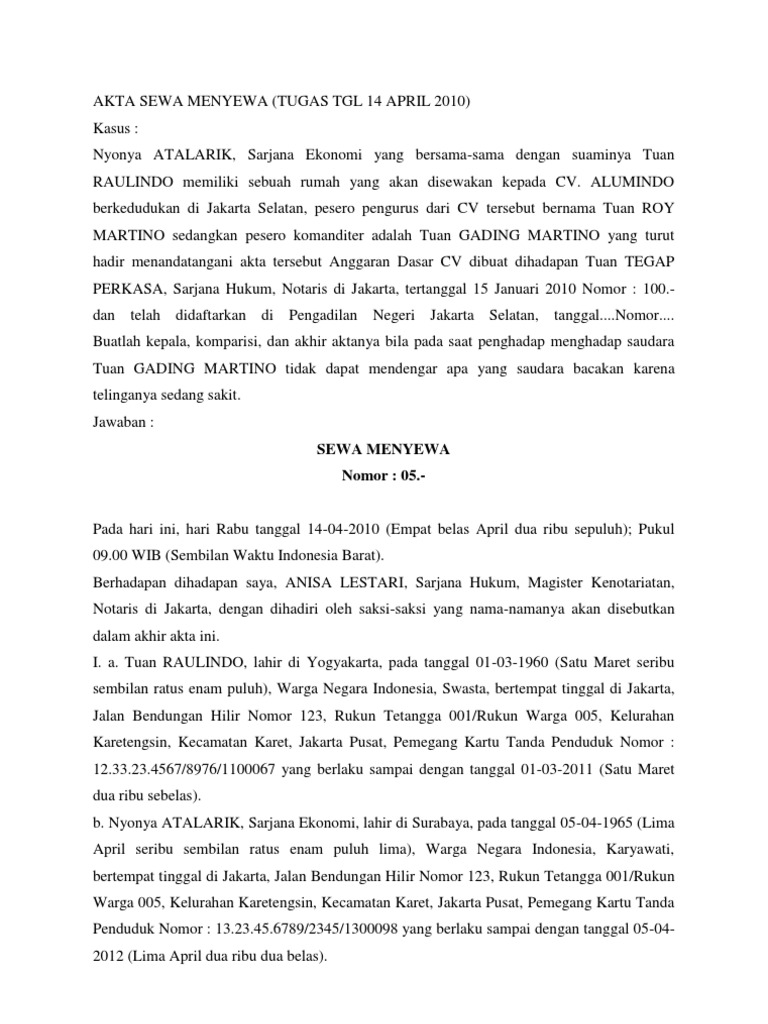 Akta Otentik Sewa Menyewa Rumah Pdf